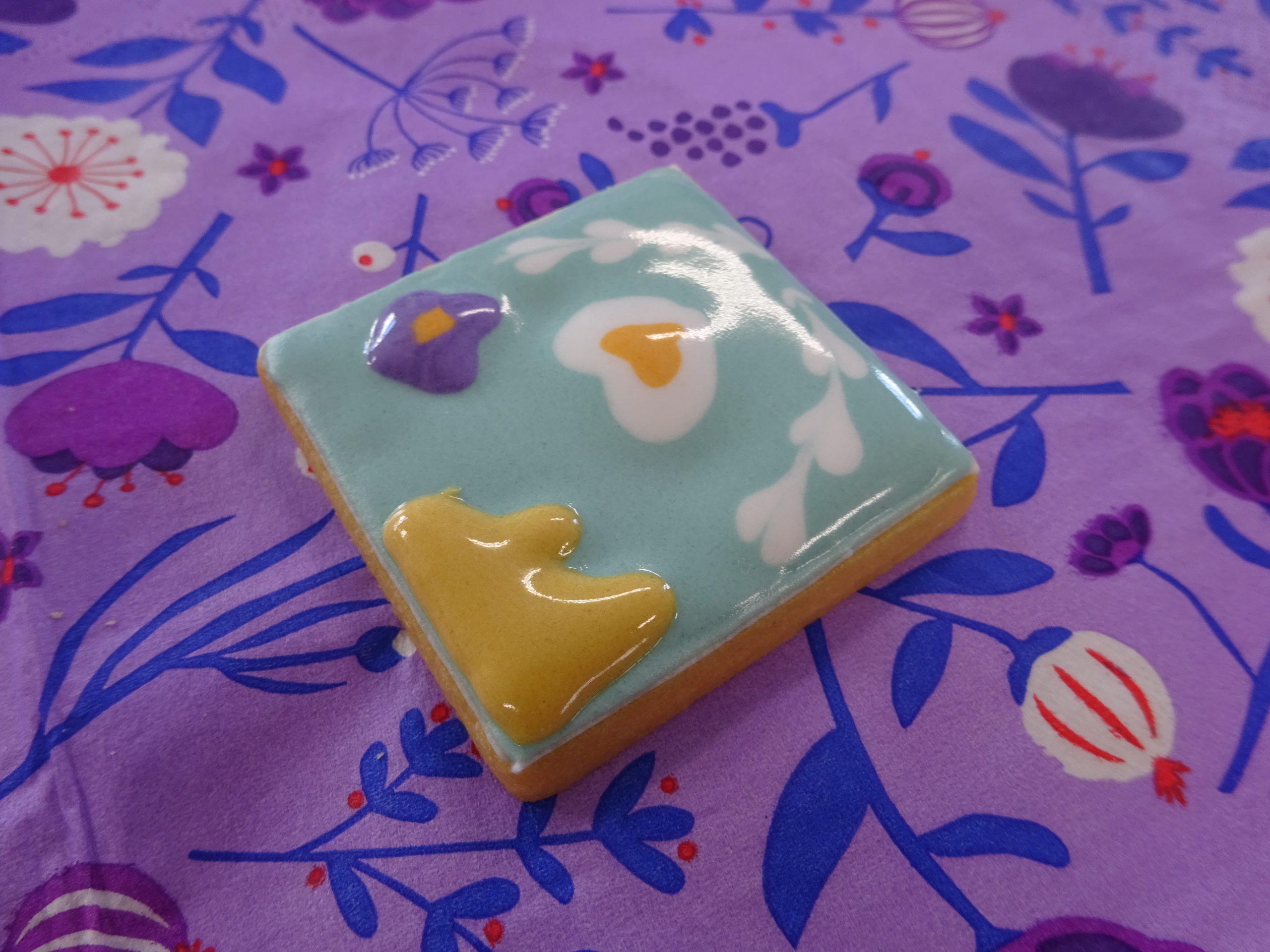 去年と同じ先生だったので、講座の進行にとても慣れておられ、教え方もとても優しく、みんな楽しく受けることができました。ハートやクモの巣の描き方を丁寧に指導してくださり、新しい技を身に付けた子どもたちは、2枚のクッキーに個性あふれる絵を描いていました。あっという間に時間が過ぎて、もう少し描きたかったと言っていた生徒が多かったです。