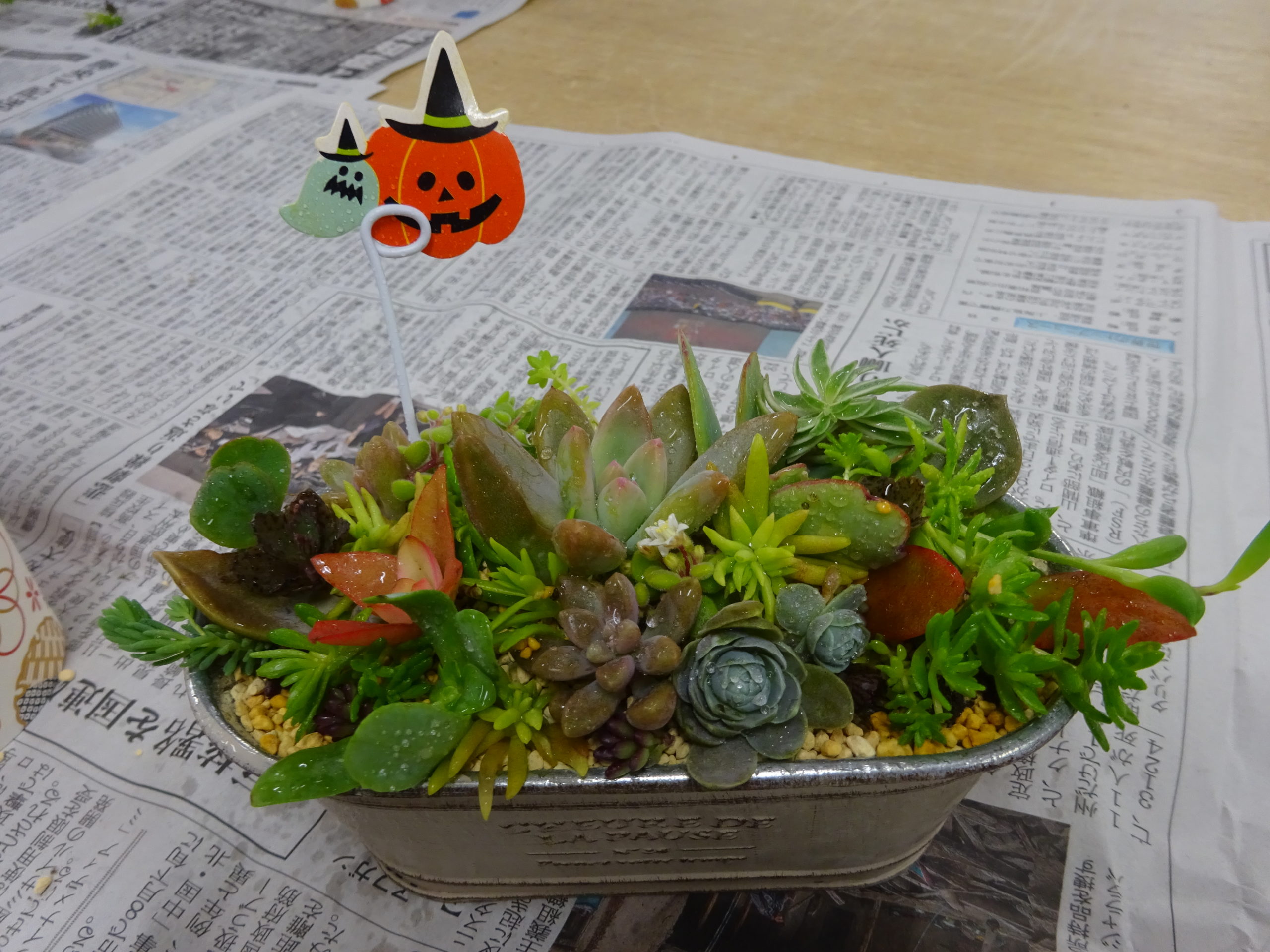 講師の方が用意してくださった多肉植物や容器を選ぶところから始まり、思い思いに多肉を植えていきました。多肉に関する質問もたくさん出て、講師の方との会話も弾み、和気あいあいと過ごすことができました。「ひとつ趣味が増えた!」と言ってくれた生徒もおり、みんなで楽しめました。