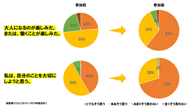 ・大人になることが楽しみになった。たくさんの人が夢を持っていて。持っていなくても、自分の考えがしっかり持てていて、いまの幸せに感謝できるってすごいなぁと思った。この経験を通して、大切なのは選択することではなく、自分が選択した今をどう強く生きるかだと思った!