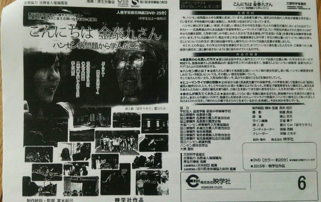広島県福山市の高校生と国立ハンセン病療養所長島愛生園で暮らす金泰九(キムテグ)さんとの交流を描いた作品です。