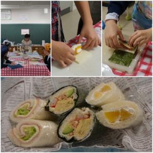 その中の1つ、「何でも巻き巻きロールサンド」では、3つのロールサンド(チーズ・ハムロール、フルーツロール、巻き寿司ロール)を作りました。