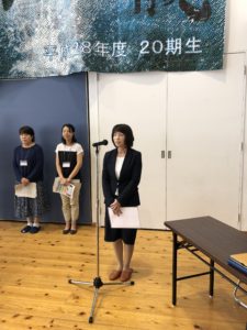 次に、29年度役員を代表して、森川さんよりご挨拶いただきました。森川さんには5年間の長きに渡りPTA役員としてご尽力いただきました。ほんわかとしたお人柄の森川さんは総務部のオアシス的存在でした☆29年度の役員の皆様、PTA活動の様々な場面でご協力いただきました保護者の皆様、先生方、1年間ありがとうございました!