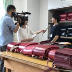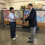 7月30日(月)午前11時半、岡山市教育委員会を訪問し、この度中央中PTAで回収した113個のランドセルを寄贈させていただきました。