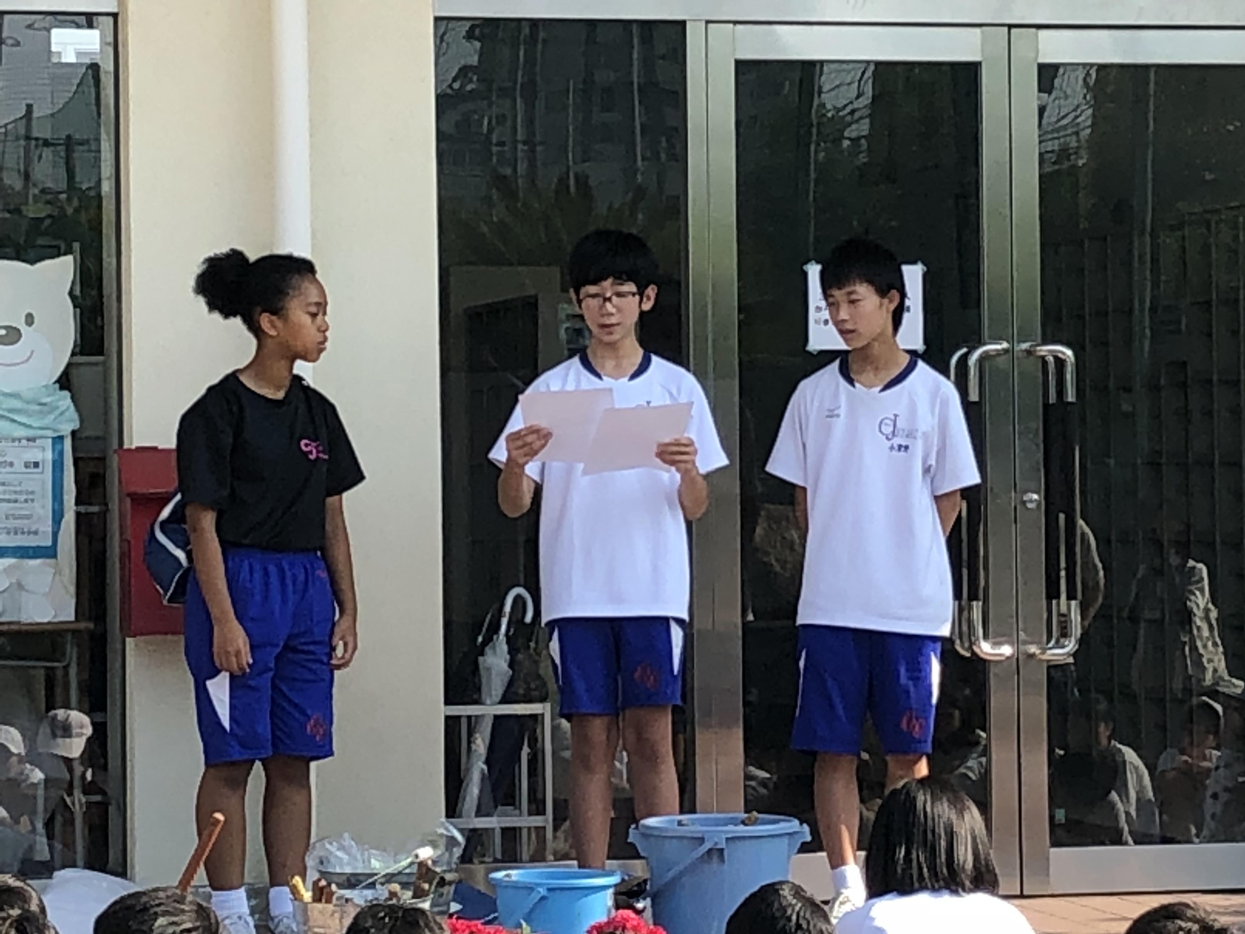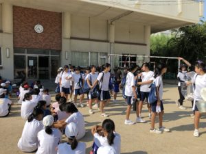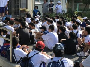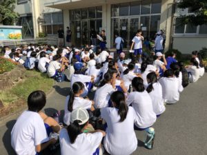 - 生徒会役員の声掛けでしーんと静かに。今日の日程、担当場所を聞きます。