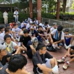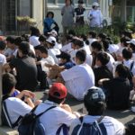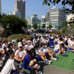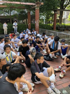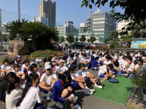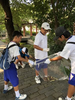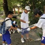 8月3日(金)、生徒会清掃ボランティアに、青少年育成協議会環境浄化部として参加しました。この日も日中の予想最高気温は35度、立っているだけで汗ばむ暑さですが、8時前からこの日の活動に参加する生徒たちが続々と集まってきます。