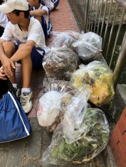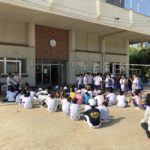 育成協議会のメンバーは、男子バスケットボール部と男子ソフトテニス部の部員と共に西川緑道公園のゴミ拾い、雑草抜き等の作業をし、9時30分に中学校に戻りました。