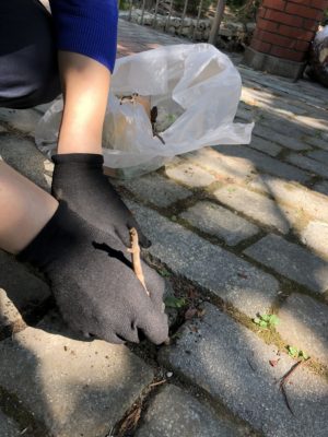 - 石畳の間に生えている草も抜きます