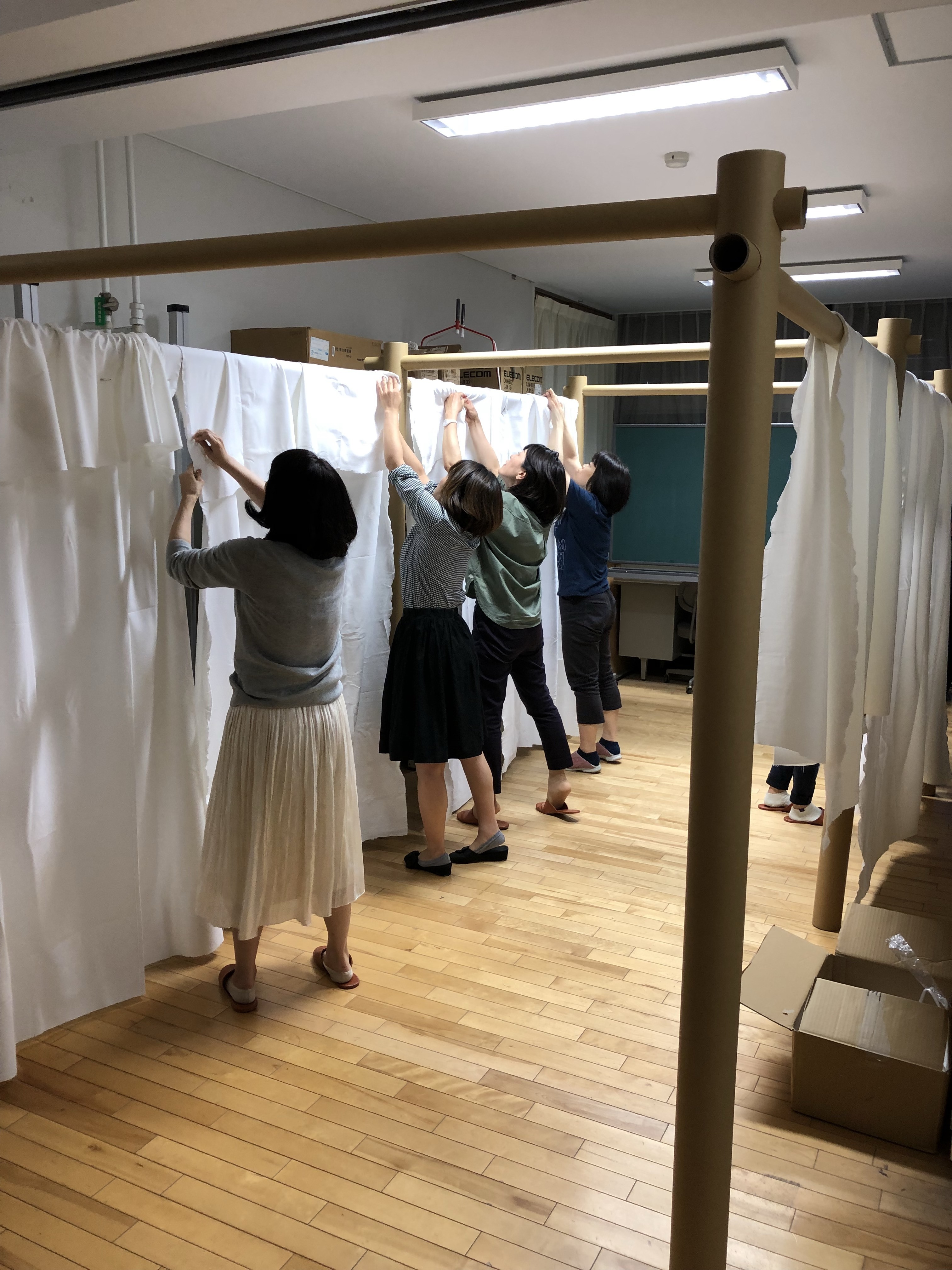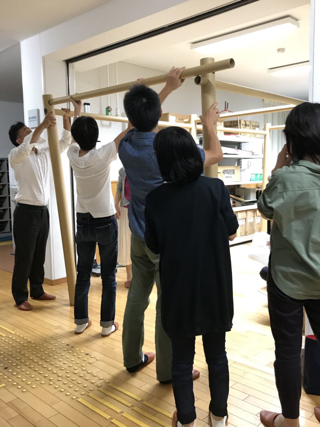 また、部会終了後に、PTCフェスティバルのスペシャル講座「防災意識を高めよう!」で生徒と保護者で一緒に組み立てる予定の「ペーパーパーテーション」を総務部メンバーで実際に組み立ててみました。