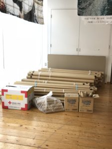 その為、この夏に起きた西日本豪雨の避難所で、実際に設置されていたものを、先週、児島と高梁に行ってお借りしてきました。