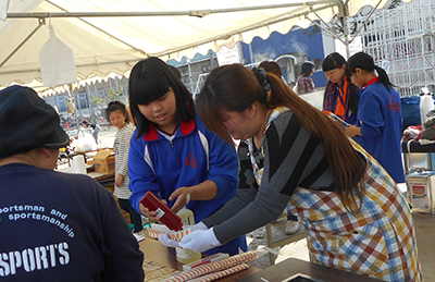 中央中の生徒が飲食店ブースにボランティアとして参加させていただきました。