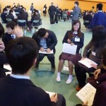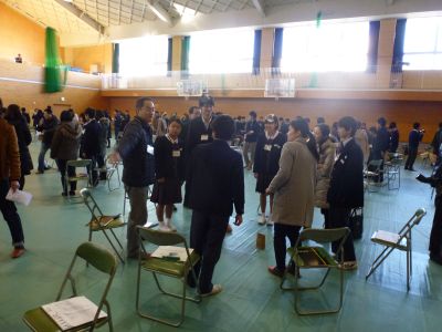 「だっぴ」の皆さんと中央中2年生と大人ゲストと呼ばれる社会人が約60名、運営サポートする大学生30名、そして今回、岡山の中学校では2校目の実施ということで注目されていたらしく学校関係者の方や自治体の方々、地元新聞社やTV局、雑誌社などのマスコミの皆さんなど体育館は大変な賑わいでスタートしました。